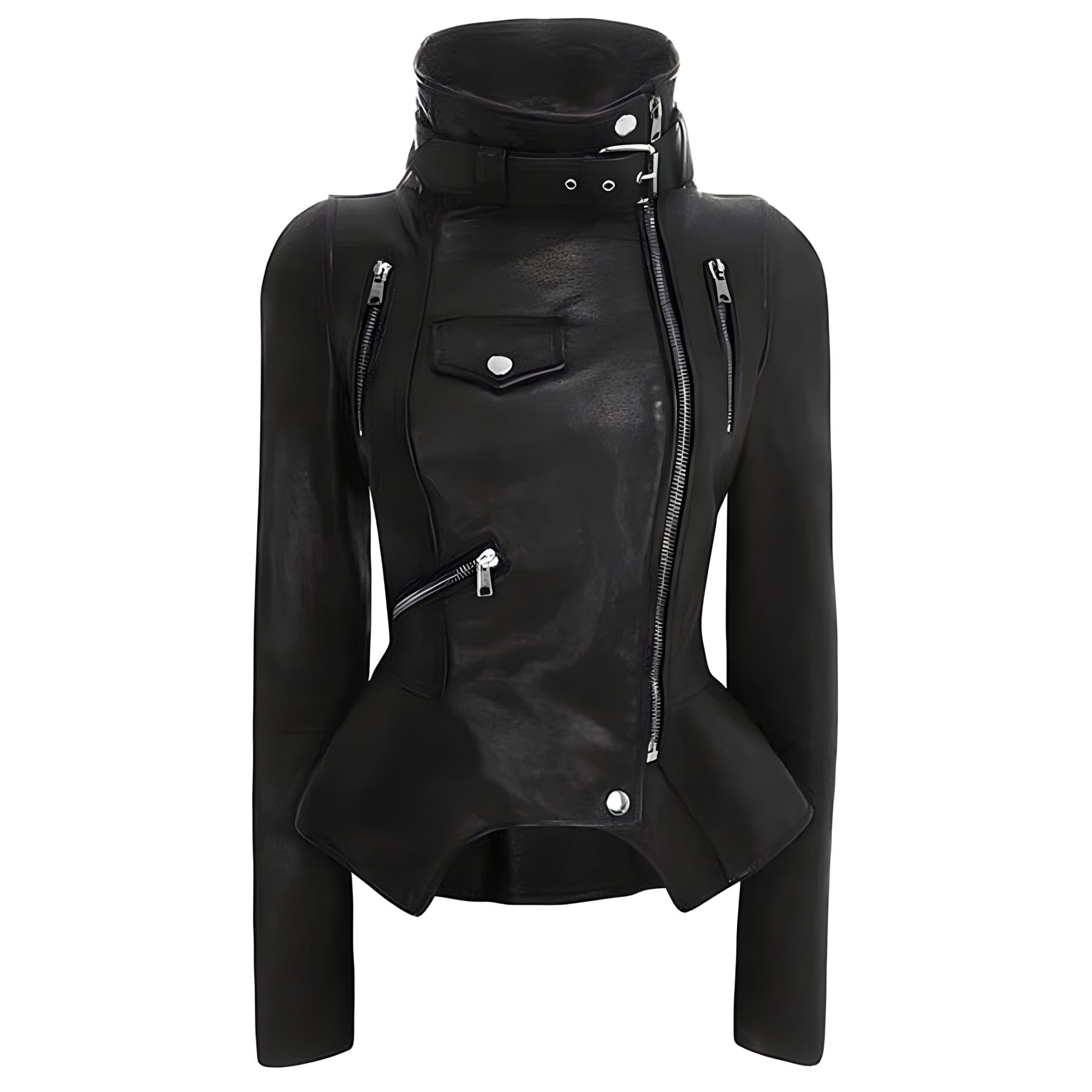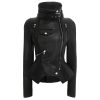 Experience the unique detail and styling on this biker jacket. The outerwear features a smooth faux-leather exterior, turtle-neck collar, and meticulous construction throughout. Designed exclusively for those who aren’t afraid to express their own style.