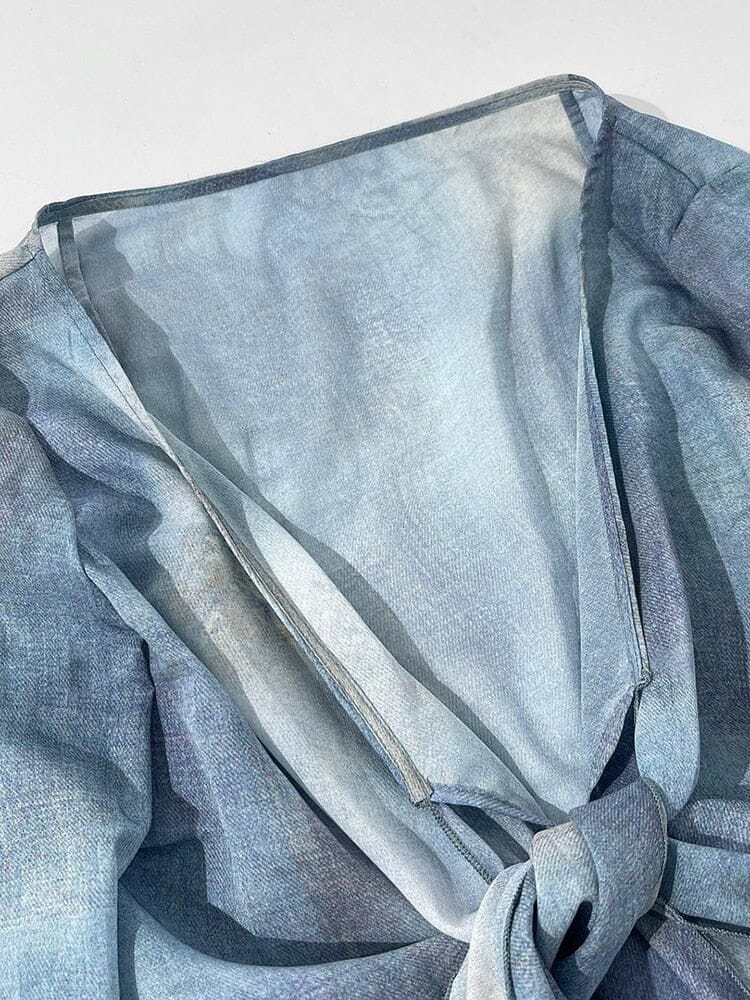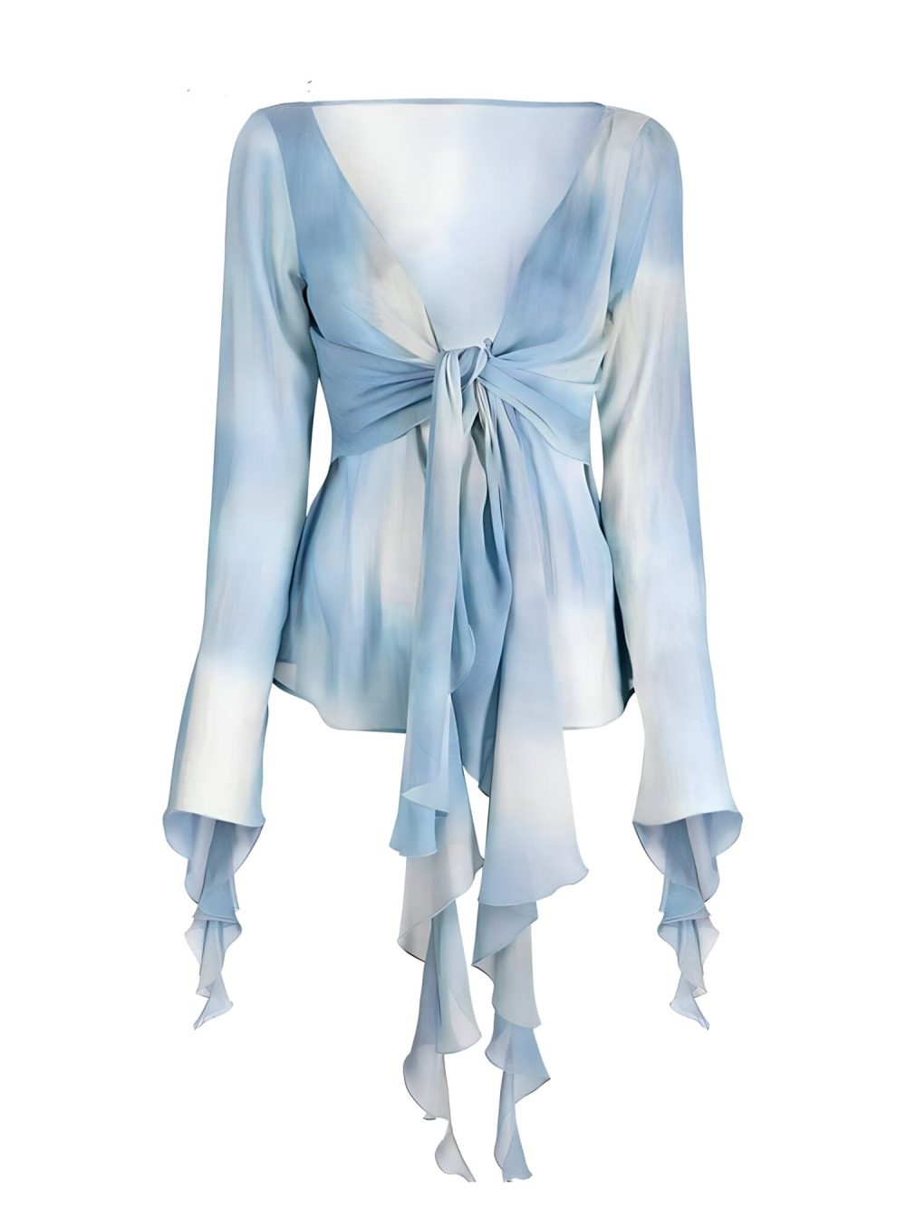 Elevate your look with our exclusive blouse. Features a premium polyester-cotton woven fabric composition, full length ruched butterfly sleeves, with a decorative mid-drift sash for an iconic summer look. Be the center of attention all season long.
